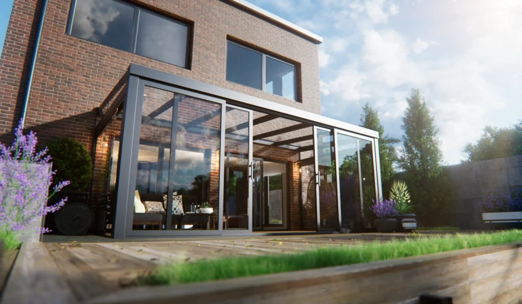 The addition of the semicircular detail gives this sunroom an extra dimension. In addition to the elegant look provided by semicircular gutters, they also ensure good drainage of rainwater. The square posts, with measurements of 136 x 130 millimeter, not only offer solid support but also provide a contemporary look. The gutter, with a width of 199.8 millimeters and the girders of 55 x 122 millimeters adds to this. With regards to the roof, you can choose from glass or polycarbonate with a maximum thickness of 32 millimeters. With a maximum depth of 7,000 millimeters and a stretch of 6,000 millimeters, the Primeline Plus sunroom combines functionality with style, making it the ideal choice for anyone looking for a durable and beautiful sunroom. And the installation? That is done safely as well as accurately, as the fixing materials comply with different DIN-specifications.